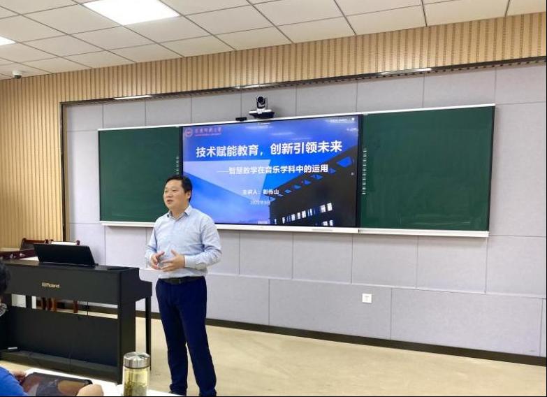 为进一步加快推进信息技术与公司产品融合创新,助力教师熟练应用智慧教学手段和方法,提高教学能力和教学效果,推进“互联网+教学”改革进程,9月28日下午,太阳集团122cc在智慧教室举办“智慧教学在音乐学科中的运用”的教学专题讲座,由太阳集团122cc副经理彭传山主讲、副经理徐冉主持,教务处副处长阮建玲参与指导,公司全体教职工及部分研究生到场聆听。
