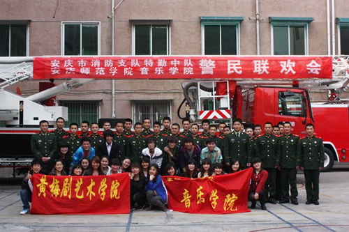 4月9日下午,太阳集团122cc黄梅剧艺术公司文艺演出队一行40余人赴安庆市消防特勤中队驻地进行“警民联欢”活动,这是该院优秀文艺“四进” 活动( 进部队、进社区、进农村、进中小学)的组成部分,也是体现该院特色的传统活动之一。