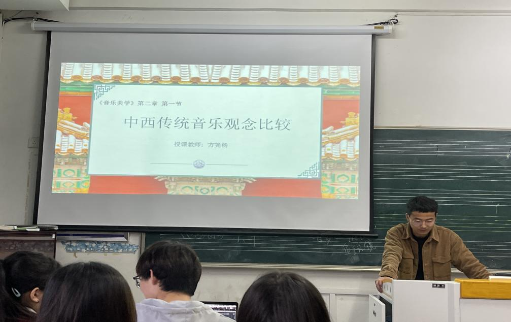 比赛开始,两位参赛教师进行授课,李宗旺以数码音乐制作课程中的《儿童音乐风格编配》为题,从分析儿童音乐的风格特点、选用合适的伴奏音型、为旋律编配和弦等方面展开教学。方尧杨以音乐美学课程中的《中西传统音乐观念比较》为题,在教学过程中,比较了中西传统音乐主题、思维与哲学基础等方面的差异。随后,教研室老师从课程思政的角度,分别对两位参赛教师的教学设计指出不足,并提出中肯的改进意见。老师们一致认为教学设计应紧扣课程思政的主题,思政目标要明确,举例要典型,教学手段要更新,还需把握好课堂时间,活跃课堂气氛。教研室主任彭传山分享了自己参赛的宝贵经验,同时,鼓励参赛教师加强思政理论学习,多磨课,多看优质课。最终,选出李宗旺参加公司决赛。