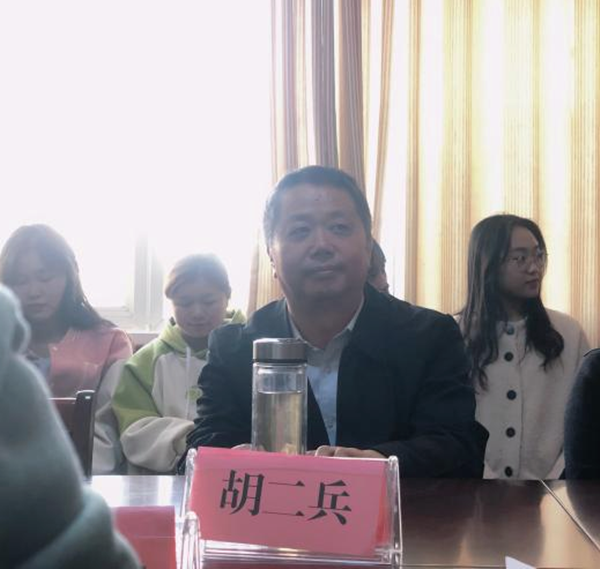 校外导师代表胡二兵老师发表讲话,他告诫同学们理论需与实际相结合;要多参与课堂实践活动。鼓励同学们在实践中探索论文研究方向。