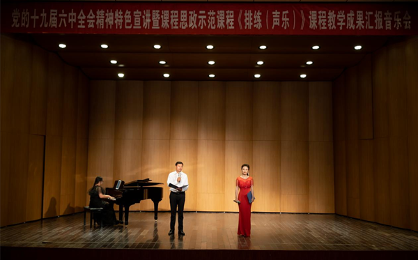 “一针针一线线,绣出一片新天地……”6月12日晚,音乐厅里传来了阵阵激昂的歌声,公司在此举办了党的十九届六中全会精神特色宣讲暨课程思政示范课程教学成果汇报音乐会。公司党政领导班子全体成员及部分教师,与近300名员工同上了一堂特殊的“思政大课”。音乐会由肖之进和高艳主持。
