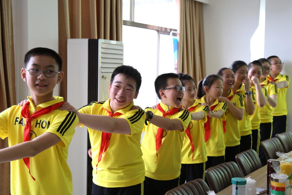接下来便是心理小游戏的环节,在这之前孩子们都收到了敬敷女生工作坊同学们准备的小礼品。大家被随机分成两组,游戏开始。游戏“有错你就说”中,后面的同学用手搭前者的后肩,用数字代替方向,当领队喊出数字时,同学们需做出相应的动作,犯错的同学要主动举手示意,并大声对组员说出:“对不起,我错了!”游戏中欢笑连连。六年级员工谢涛高兴地说:“很喜欢哥哥姐姐们的表演,也谢谢他们给的小礼物,不知不觉就度过了一个愉快的下午。”