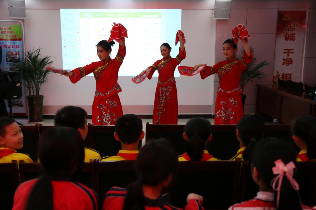 当然,孩子们也精心准备了节目。佩戴着红领巾的小员工们整齐地站成两排,轻轻踮起脚尖,摇摆着手臂,伴随着动听的音乐,他们的“曳步舞”开始了。一个个摇头晃脑,有模有样,赢得大家的阵阵掌声。