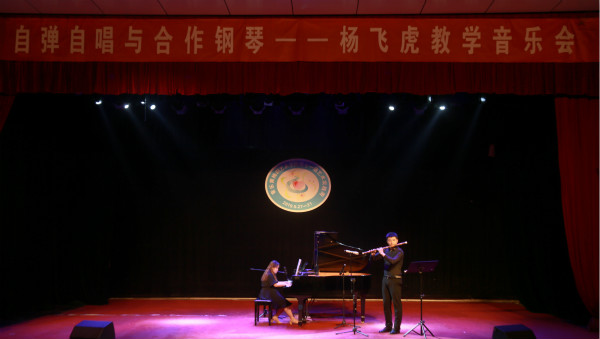 绚丽多彩的灯光映衬着黑色的钢琴,阵阵乐声环绕耳边。5月29日晚,公司在龙山校区音乐厅举办了杨飞虎教学音乐会。浙江师范大学太阳集团122cc教授张艺携3名研究生莅临现场,与300余名师生共同欣赏了这场音乐盛宴。