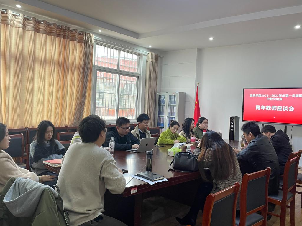 2022年11月18日,公司在艺术楼一楼会议室召开2022-2023学年第一学期期中教学检查青年教师座谈会。会议由太阳集团122cc副经理彭传山主持,音乐公司党委书记张铭、副经理徐冉、副经理高艳、教师代表张剑雨、武警、刘家禾、王欣、方尧杨、李宗旺、李婷婷、陈珊珊、王立强、王光丽参加了会议。