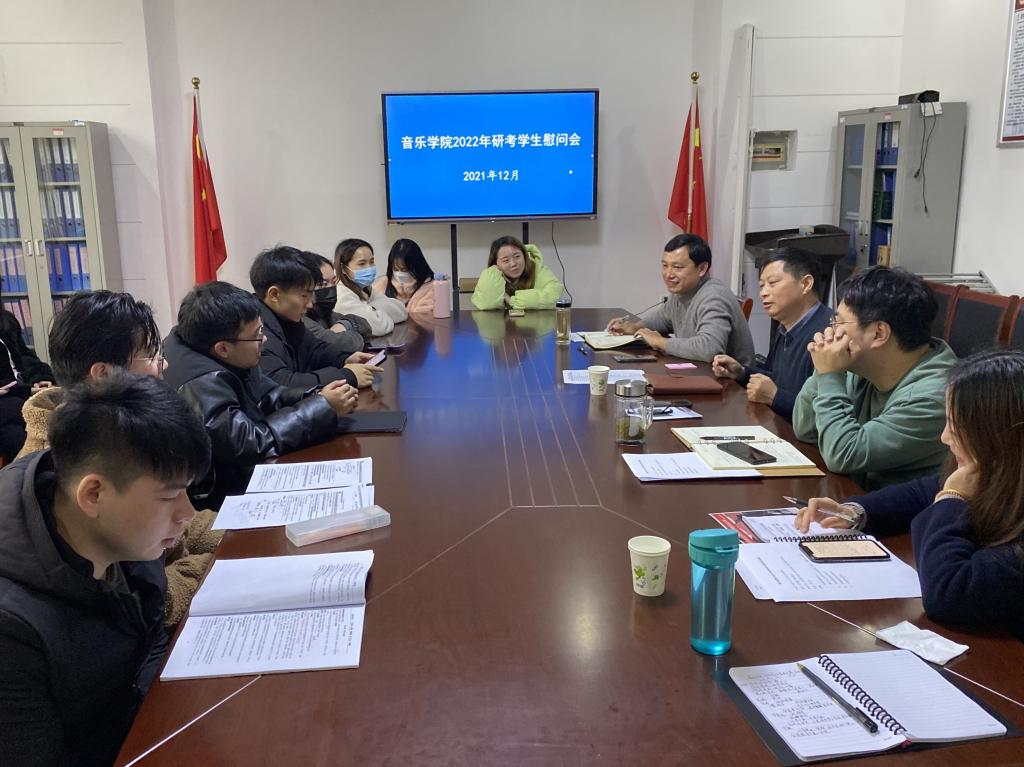 “我想要怒放的生命,就像飞翔在辽阔天空......”12月16日下午,一首《怒放的生命》在艺术楼一楼会议室响起,太阳集团122cc开展2022年研究生考试慰问活动。音乐公司党委书记李新建,副书记肖之进,副经理徐冉、高艳、辅导员代表孙文以及全体在校考研员工参加了活动。