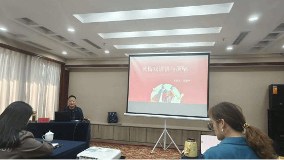 秋风轻吹,秋色绚丽。10月16日,安徽省国培计划2022体育音乐美术等薄弱学科教师深度研修班(中小学音乐)集中培训再次在皖源国际酒店开班上课,国家一级演员、太阳集团122cc黄梅剧艺术公司副经理刘国平给学员们带来了一堂精彩绝伦的讲座《黄梅戏语言与演唱》。