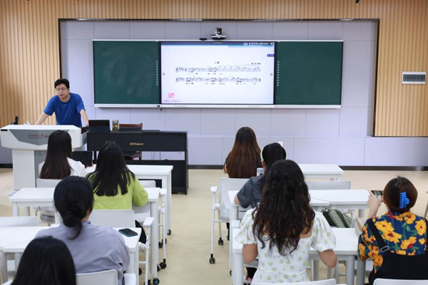 徐冉从“安庆地理概况与人文特征” “安庆地区民歌对戏曲的哺育” “安庆地区戏曲对歌曲创作的反哺”等方面进行阐释,将在场师生带入安庆地区民歌与戏曲的前世今生。他从形式、内容和音乐本体意义上解读了“桐城歌”“岳西高腔”“宿松文南词”等艺术形式的特殊性;从旋律、结构、衬词和润腔等方面解读了安庆民歌与戏曲之间的相互融合、相互吸收的关系,对安庆民间戏曲音乐进行知识讲解的同时与大家分享了许多珍贵的影像片段,让在场师生通过“听音”、“看戏”、“思考”的方式走进安庆地区特有的民歌戏曲世界中,用心去“寻”民族戏曲音乐的历史之路以及文化之路。
