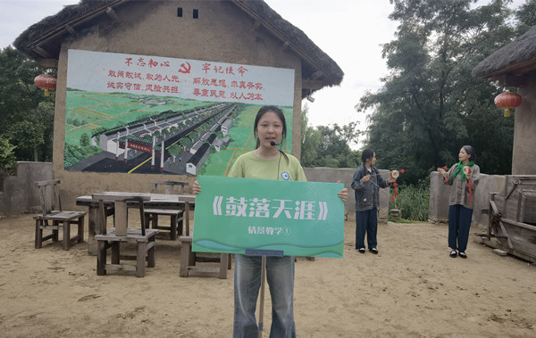 “我们分田到户,每户户主签字盖章,如以后能干,每户保证完成每户的全年上交和公粮。不再向国家伸手要钱要粮。如不成,我们干部坐牢杀头也甘心,大家也保证把我们的小孩养活到十八岁。”在小岗村旧址,一座土坯茅草房是当时包产到户签字的地方,实践团队师生观摩了情景思政课《1978:十八个红手印》,以《鼓落天涯》《等你回来》《守不住的粮仓》三个行进式话剧为主线,再现了当年小岗村18位农民以“托孤”的方式按下红手印的真实情景。