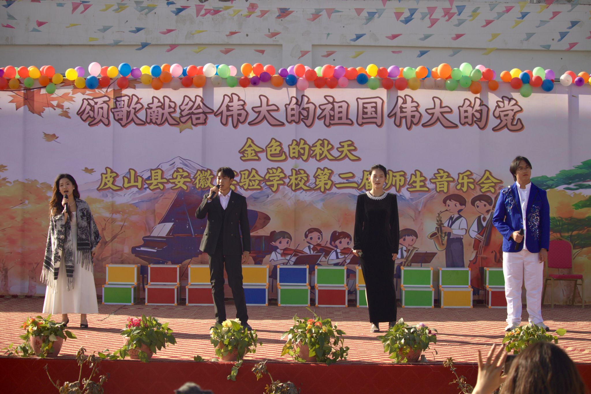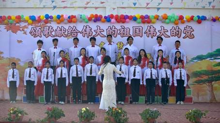 音乐会在《歌唱祖国》的全体合唱中进入尾声,支教队员与安徽实验公司师生用激昂的歌声表达对祖国、对党的无限热爱与祝福。